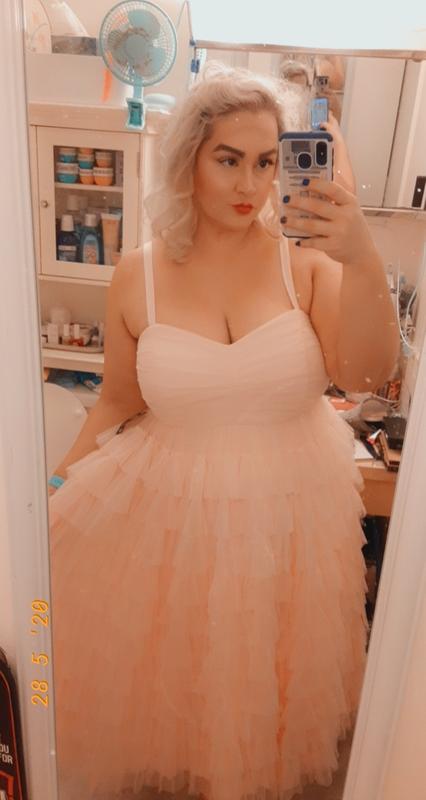 Plus Size Special Occasion Peach Pink Mesh Tiered Ruffle Midi Dress Torrid